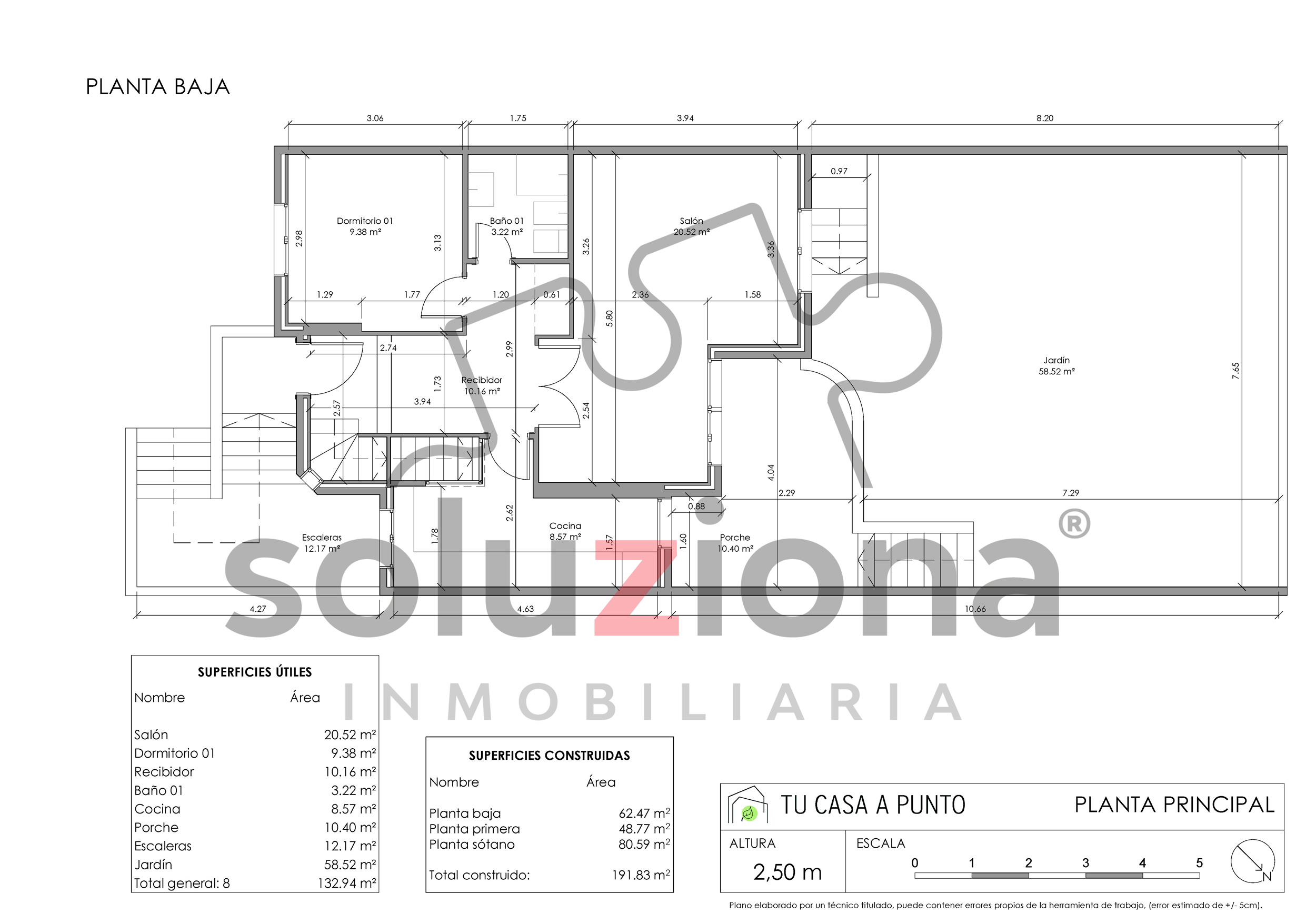 La vivienda cuenta con una superficie construida de 161 m2 según Escritura y 148 m2 útiles según realidad física, ofreciendo un espacio cómodo y versátil para el día a día. Dispone actualmente de 3 dormitorios y dos cuartos de baño.