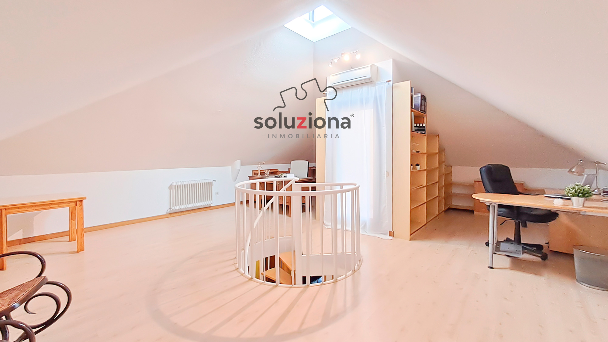La buhardilla, de 51 m2, es un espacio diáfano que actualmente se utiliza en varios ambientes, perfecto para adaptar a las necesidades de cada familia.